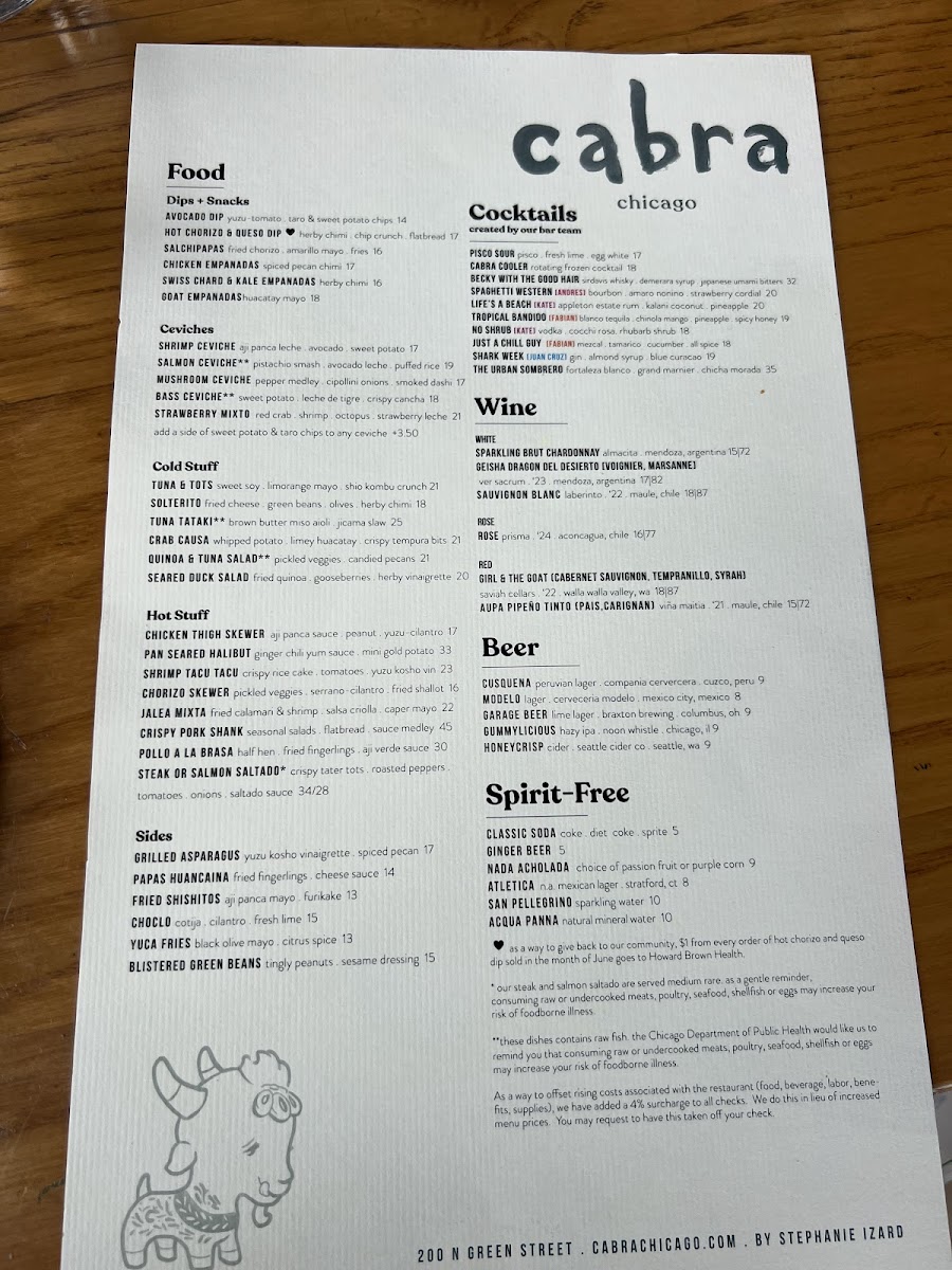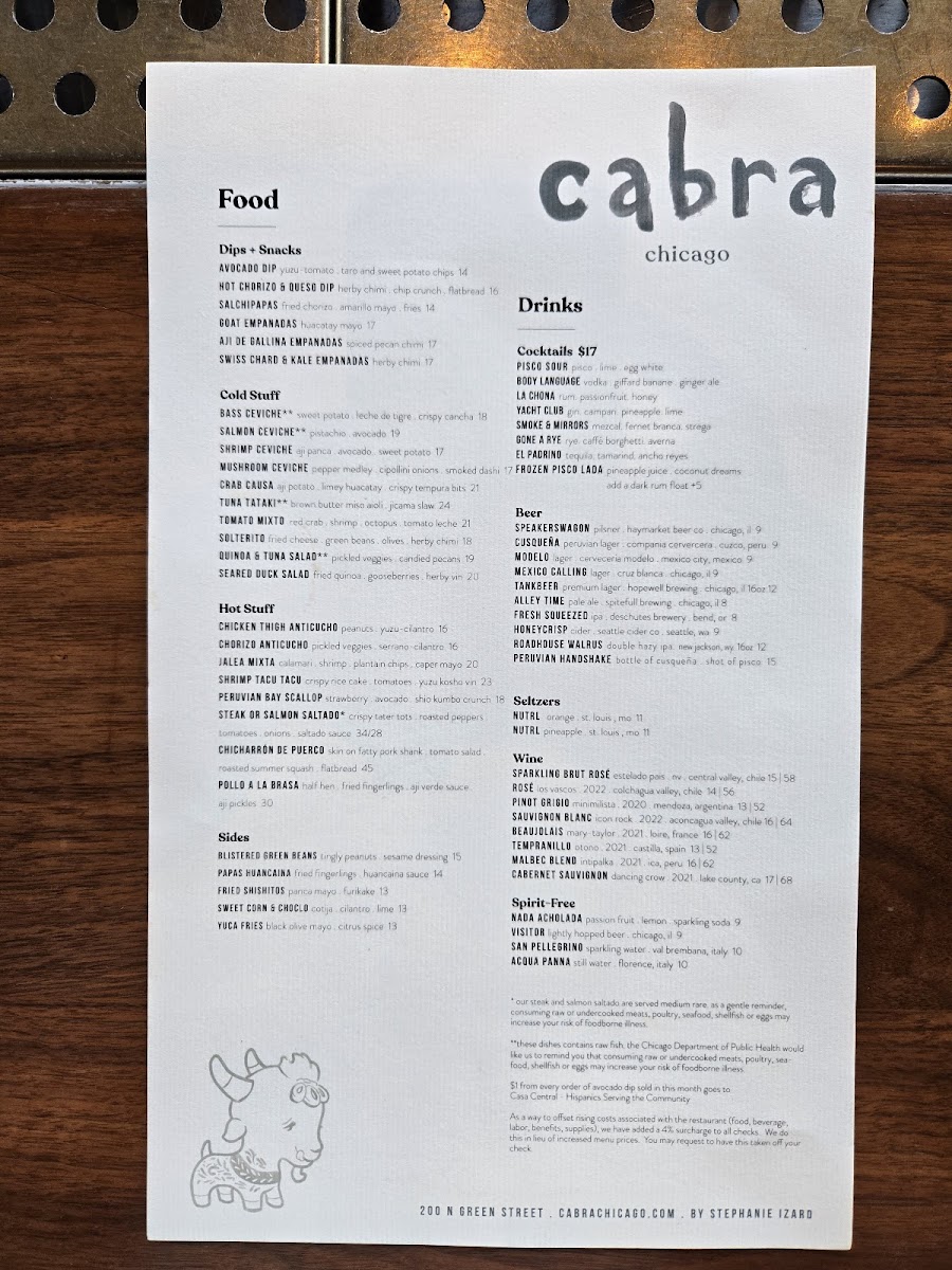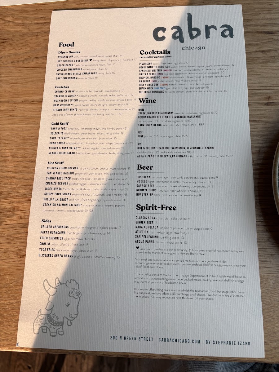 Welcome to Cabra, a vibrant Peruvian restaurant nestled at 200 N Green St, Chicago, IL 60607. This contemporary dining oasis boasts not only a diverse and tantalizing menu but also an extraordinary rooftop experience that perfectly encapsulates the essence of Chicago’s dynamic food scene.